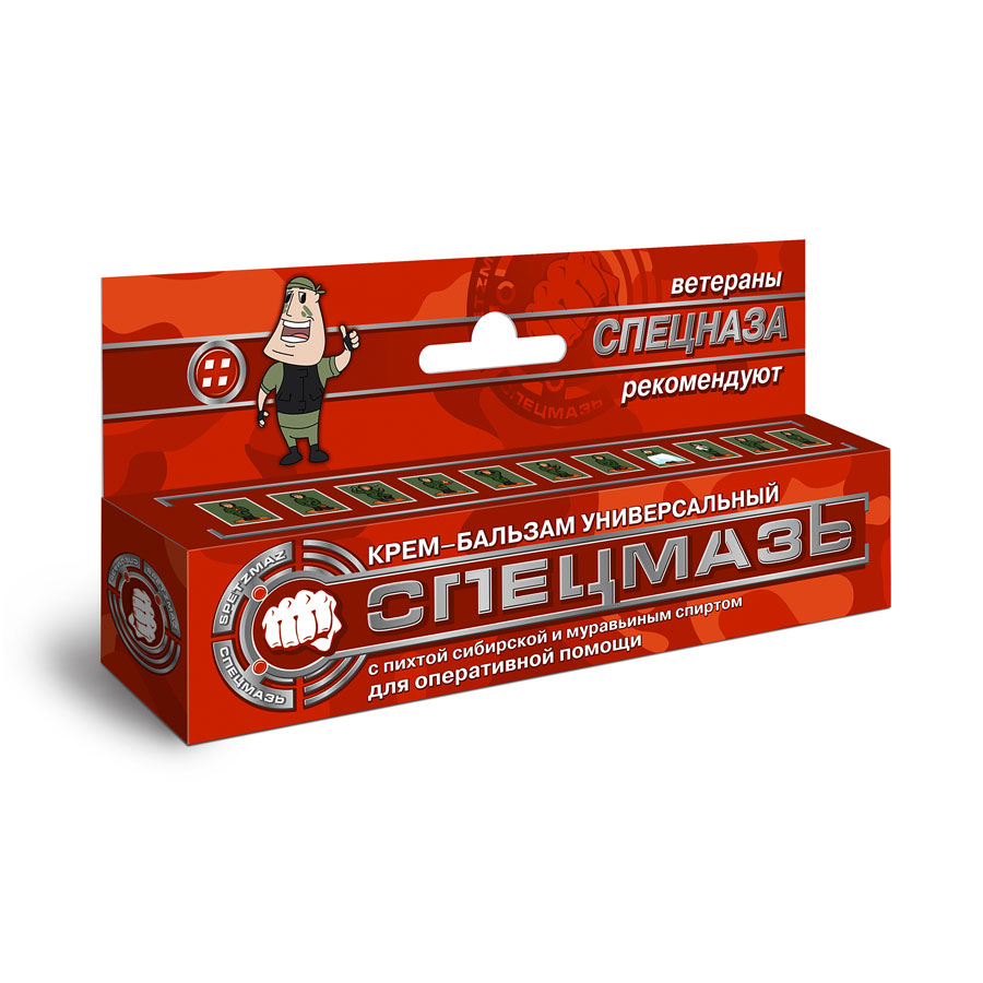 Универсальный крем-бальзам СПЕЦМАЗЬ может способствовать скорейшему заживлению небольших ранок, порезов, царапин и ожогов. Благодаря комплексу натуральных экстрактов растений, масла сибирской пихты и муравьиного спирта этот препарат стимулирует восстановление поврежденных клеток кожи.