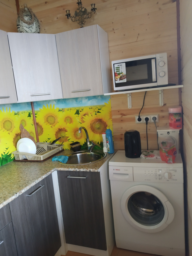 Первый день. Хозяйка рассказала о том, где живем, кухня, стир. Машинка.