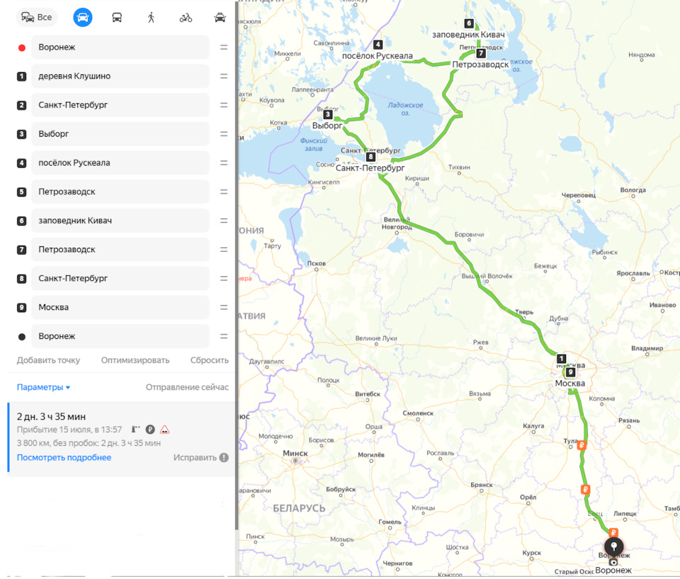 Об остановках на ночь: хотелось бы чередовать палатку с отелями (кроме Мск и Питера), но в незнакомых городах нет понимания где развернуться, поэтому пока в планах рассмотреть только отели на каждой остановке. Где-где, а в Рускеале вообще не знаю где останавливаться (вроде есть какие-то кемпинги, но в подробности пока не вдавался).