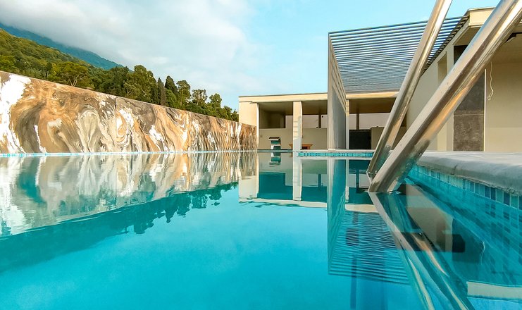Отдыхали на майские. Можно остановиться, но питание не берите. На завтрак каши рисовая, манная и так далее. Иногда яичница. На ужин макароны и ещё раз макароны. Вкусно, но все же. Если ваши дети привередливы в еде, не советую. Есть заказное питание. Это вкусно. Но опять же только на ужин. Завтрак и обед нельзя заказать. И вокруг поесть негде совсем. Нет ни кафе, ни столовых. Нужно куда-то ехать. Бассейн вроде бы с подогревом, но вода так себе. Купаться не хочется. Прохладная. Вокруг пансионата разруха. Все разбито. Но так во всей Абхазии. Просто нужно быть к этому готовым. Уборка на 4. В туалете самая дешёвая туалетная бумага. Постельное и полотенца чистые. Мы отдыхали не в домиках, а в 2хэтажном здании. Честно говоря на 3 звезды как-то не тянет. Плюсы: территория очень красивая, все соответствует фото Очень приветливый персонал, девочки молодцы Закрытая парковка Атмосфера дружелюбная, все знакомятся, общаются, дети дружат. Играют в прятки. Мои не разу не вспомнили про телефоны или телевизор.