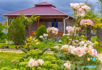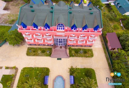 Гостевой дом - это современное четырехэтажное здание, обладающее собственной, охраняемой территорией, на которой разбит субтропический сад с финиковыми пальмами, олеандрами, огромными цветниками и фонтаном.