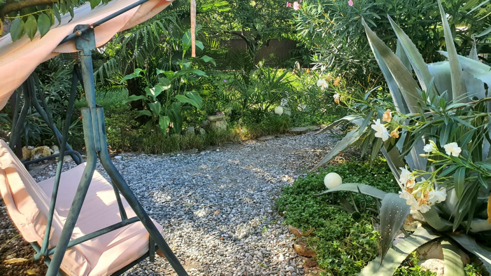Гостевой дом «Агава на Черкесской, 36» расположен в Гагре. Он находится в глубине ущелья, в тени деревьев, по соседству с пещерой Святого Ипатия и горным ручьём, утопая в цветах и зарослях маракуйи. Тут удивительно тихо и спокойно, даже когда вся Гагра гудит от ночных гуляний. Поют птицы, трещат цикады, журчит ручей. При этом до пляжа идти 10-15 минут, половина дороги в тени деревьев даже в полдень. К услугам гостей бесплатный прокат велосипедов, бесплатная частная парковка, сад и терраса, общая кухня и бесплатный Wi-Fi на всей территории. Есть мангальная зона и уютное бунгало рядом. В шаговой доступности столовые и хорошие ресторанчики с национальной и европейской кухней "Кавказская кухня", "Рица", "Золотая рыбка", "Три бочки". Пешком можно прогуляться до Приморского парка, основанного Принцем Ольденбургским и красивейшей Гагрской Колоннады. Гости могут заняться различными видами активного отдыха в Гагре и ее окрестностях, включая сап-серфинг с прогулками к дельфинам по утрам, полеты на параплане, рафтинг и конные прогулки. Предоставляются индивидуальные, авторские экскурсионные туры. Возможен трансфер до гостевого дома.