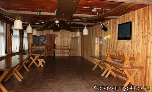 Вместительное здание на 2 этажа и площадью 1 тысяча квадратных метров – главный корпус, здесь может разместиться 60 гостей. Первый этаж представляет собой холл с мягкой мебелью. Кроме того, на первом этаже находятся зал для банкетов с VIP-зоной, детская комната, кухня, караоке - бар. Банкетный зал способен вместить 80 персон. Он оборудован различной техникой, которая необходима для проведения праздничных и деловых массовых мероприятий.