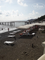 Кроме того, не обязательно далеко уезжать из отеля. На территории есть открытый бассейн, а рядом находится мелко-галечный пляж. Он оборудован душевыми, лежакам и другими удобствами.