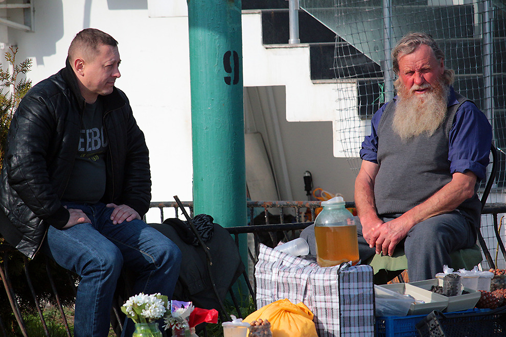 Колоритный мужчина продает на Набережной дары природы. Других торговцев не наблюдалось.