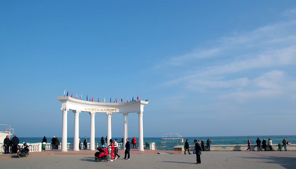 Местная достопримечательность и символ города: Ротонда с надписью "Алушта - курорт"