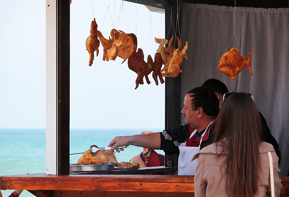Утолить голод в межсезонье можно дешево и вкусно, и «Макдональдс» тут не причем. В симпатичной и чистой столовой на Набережной быстро покормят вас комплексным обедом за 250 рублей. А ужин в кафе на двоих обойдется вам в 1300 рублей, даже с крымским вином. Кстати, об алкоголе. Не советуем вам покупать ничего на розлив.