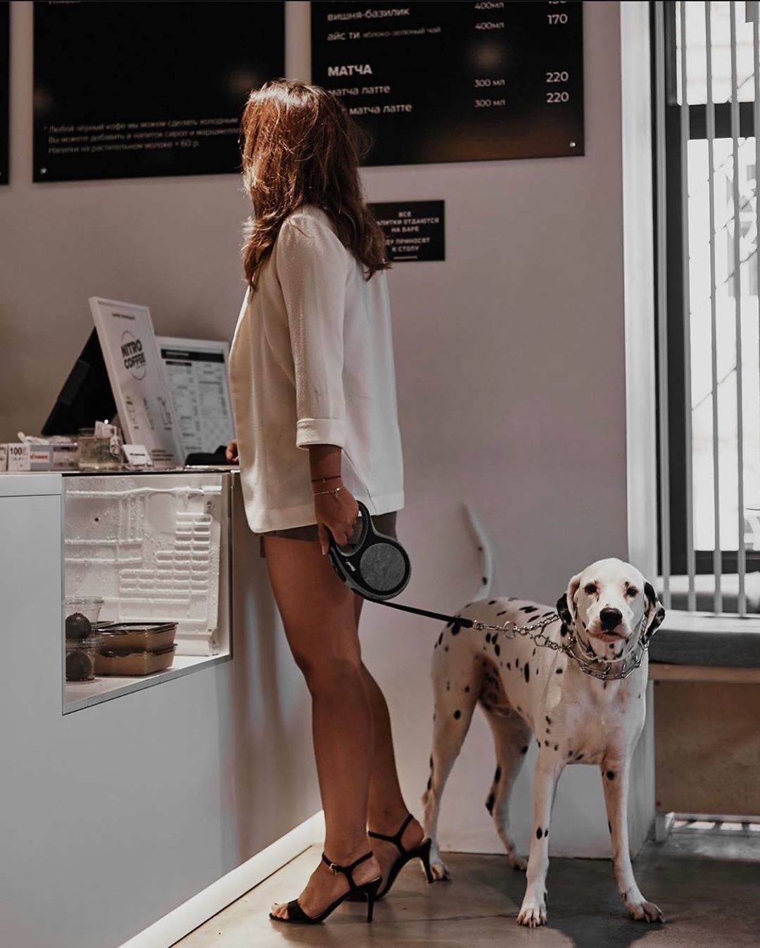 Ребята не только агитируют за экологию, угощают вкусным кофе, но и любят собак! Если размер мохнатого друга не позволяет держать его на руках, пристегните поводок.