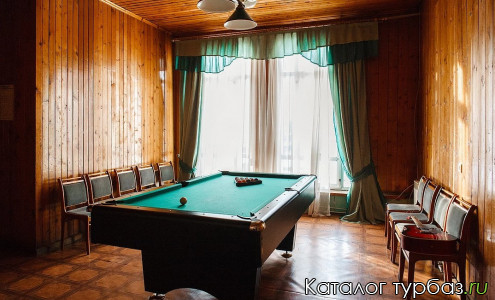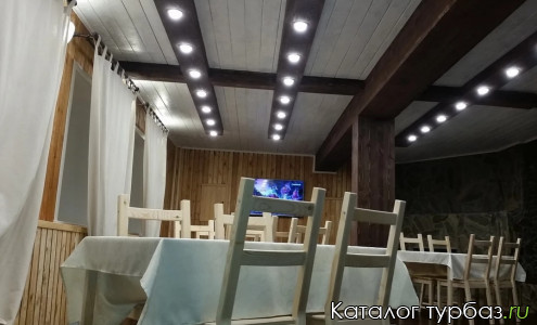 Каминный зал на 20 мест, кухня, спальные комнаты на 2-4 места, туалет и душ, холодильник, плита, чайник, бильярдный стол, телевизор.