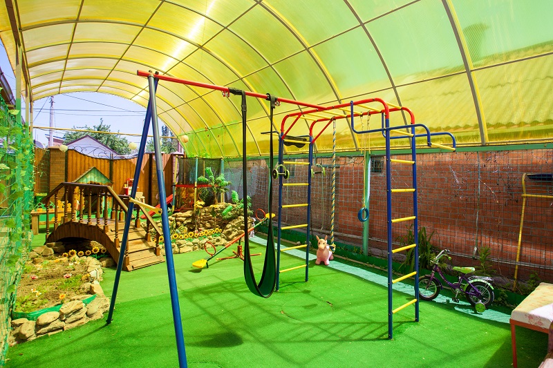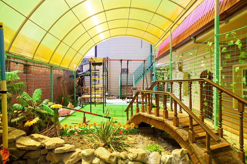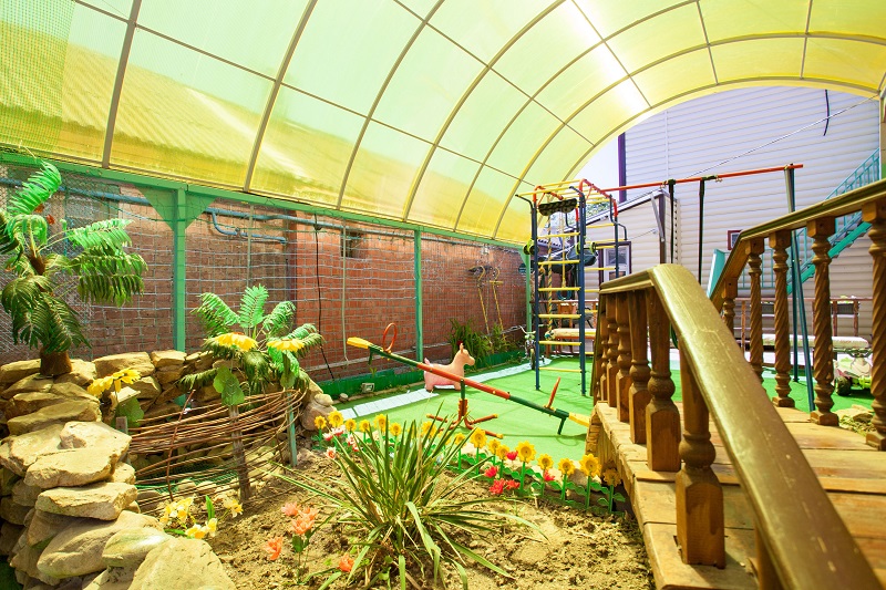 ГД состоит из трех жилых корпусов. Общее кол-во номеров 19, у нас есть летние кухни, зона столовой с мангалом и мест отдыха, детская площадка. Для маленьких гостей есть развлекательные программы с аниматорами.