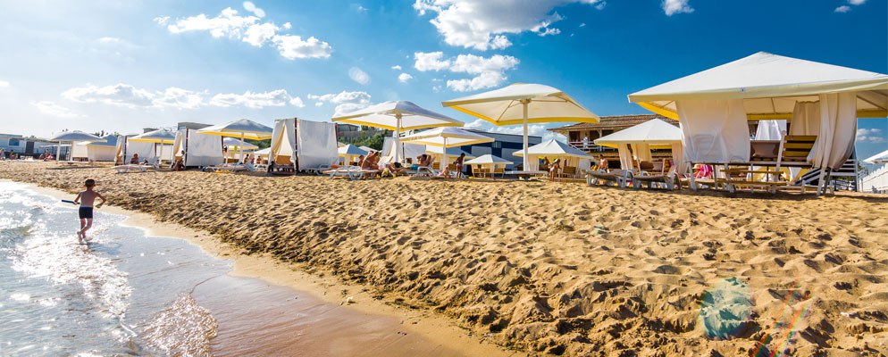 Еще один поселок с пляжами около Евпатории — примерно в 13 км от города. В Молочном находятся широкие белые пляжи — правда, инфраструктура есть только на небольшом участке. Зато на дикой части берега всегда немного туристов, да и жилье в поселке радует низкими ценами.