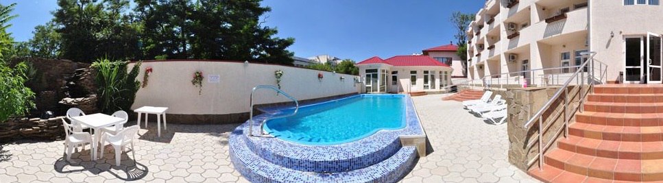 Евпатория предлагает много гостиниц с бассейном и отелей для отдыха с детьми — с большими номерами и детской анимацией.
