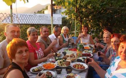 Гостеприимный дом «В гостях у Георгия» приглашает вас отдохнуть у нас. Мы находимся в центре г .Гагра. В шаговой доступности столовые, магазины, кафе. Центральный рынок, аквапарк, парк Старые Гагры в 5-10 минутах на транспорте. В нашем уютном доме вам могут предложить домашнее вино и абхазскую чачу, мандариновый сок. В доме имеется мангал и зона для отдыха. Хозяева дома очень общительные, радушные и отзывчивые, которые ответят на все интересующие вас вопросы, организуют экскурсии, встречу на границе. Пляж городской, песочно-галечный в 7 мин ходьбы.