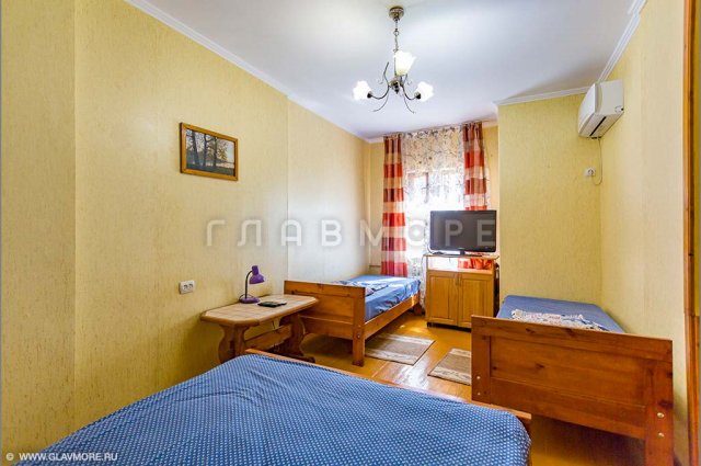 В двухместном номере (2+1): 2 односпальные кровати, раскадной диван-кровать (дополнительное место для ребенка) кондиционер, телевизор, шкаф для одежды. В номере отдельная столовая комната. Туалет, душ+раковина рядом с номером. Горячая и холодная вода постоянно. (Доп. место в номере оплачивается отдельно)