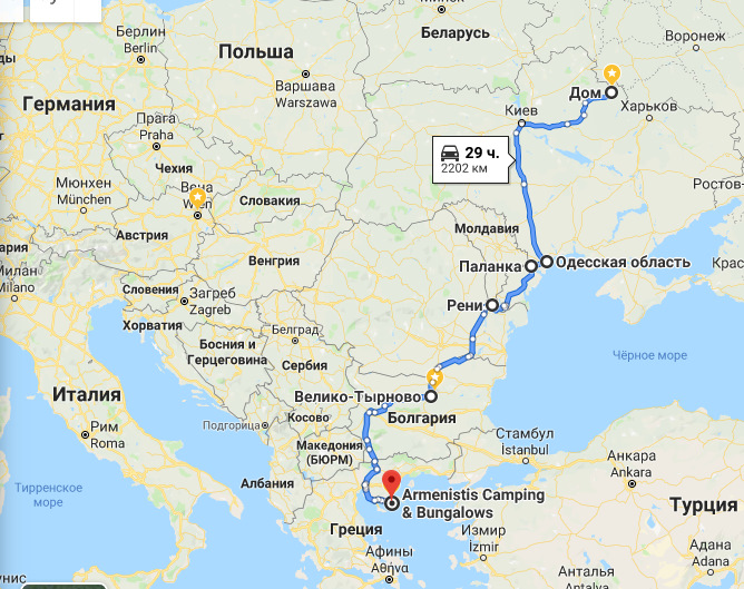 Пройдено около 5000 км. по Украине, Молдавии, Румынии, Болгарии, Греции.