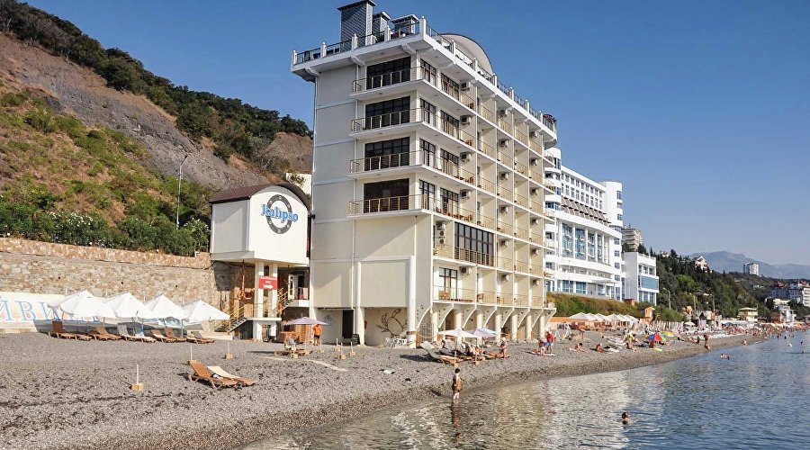 Отель «Калипсо» расположен в пятидесяти метрах от Черного моря, в небольшом поселке Алушта в Крыму.