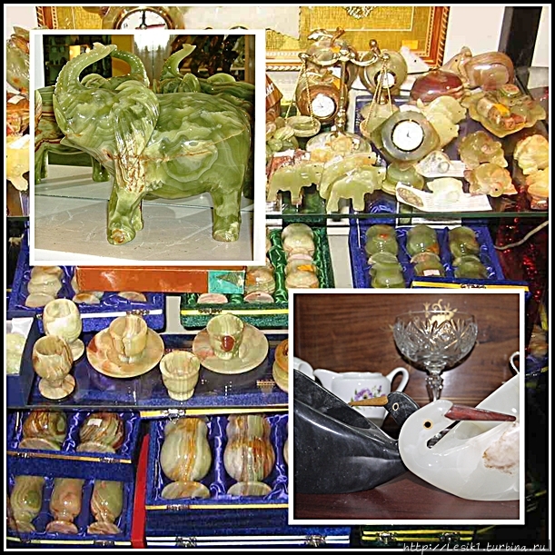 Изделия из оникса. Сейчас и в России тоже много продают всякого рода ониксовых безделушек, так что стоит крепко подумать — нужно ли тащить такую тяжесть издалека.