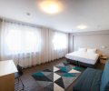 Приятный отель, хотя сетка Азимут не наш выбор, но тут особо выбирать не из чего. Все самые комфортные отели находятся по соседству, в районе санаториев. Простая мебель в стандартном номере, пастельное. Подробнее