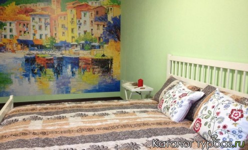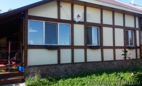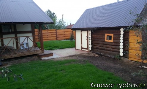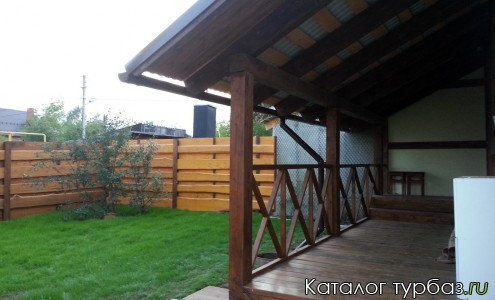 На территории есть одноэтажный таунхаус на 10 номеров. Каждый номер площадью 35 квадратных метров. Расположиться здесь могут только два-три человека, да и то третьему придется спать на раскладушке. Стоимость размещения за двоих в будний день — 2200 рублей. В выходные — 3800 рублей.