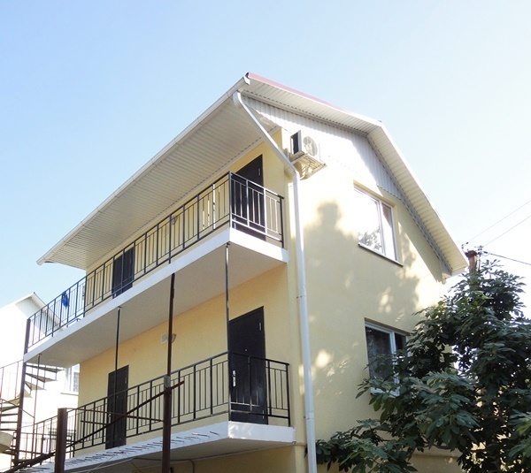 Имеется капитально оборудованная кухня на первом этаже, а также кухня-веранда с видом на море на третьем этаже. В озелененном дворе расположены столики и столы, а для детского досуга - игровая площадка, на которой есть песочница, игровой домик, горка и качели.