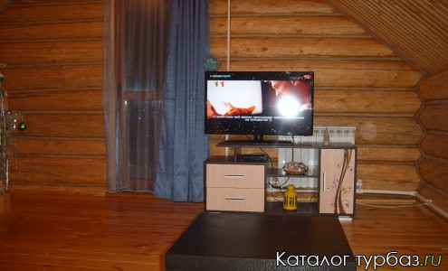На первом этаже находятся: русская печь, гостиная, санузел. На втором – спальня с телевизором.