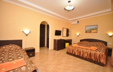 Трехместные номера полулюкс расположены на первом и втором этажах трехэтажного корпуса. Общая площадь номера - 20 кв.м. Спальных мест - три основных и одно дополнительное.