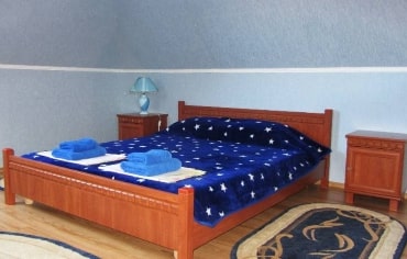 Двухкомнатный номер с кухней расположен на втором этаже отдельно стоящего коттеджа. Общая площадь номера - 37 кв.м. Спальных мест - четыре основных и одно дополнительное.