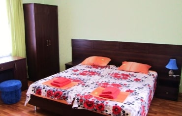 Двухместные номера стандарт расположены на первом этаже двухэтажного корпуса. Общая площадь номера - 15 кв.м. Спальных мест - два основных и одно дополнительное.