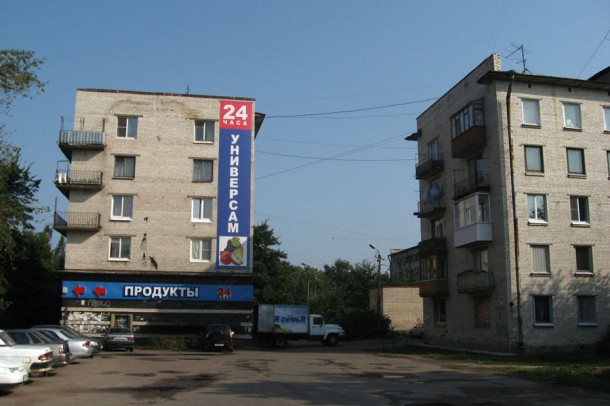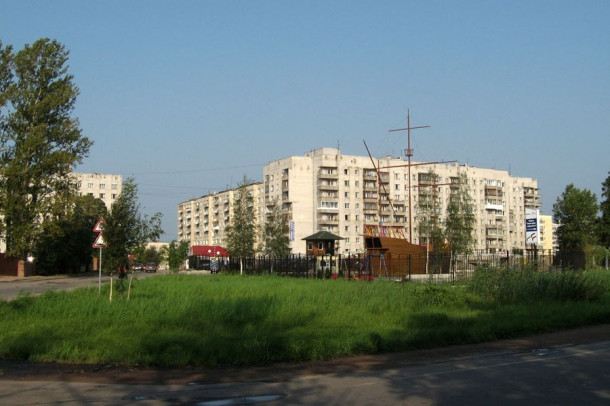 Добираются в Никольское от станции метро Рыбацкое (мне было удобней ехать через Колпино). На въезде в город меня встретили типично питерские (только как бы обрубленные) дома-"корабли".![]()
