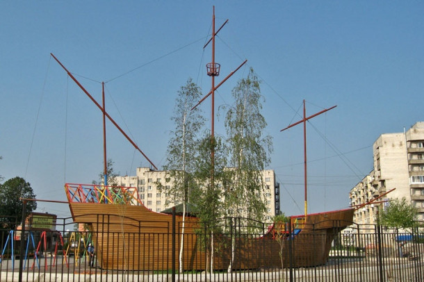 Нет в городе достопримечательностей - создадим! Такой вот корабль отгрохали на детской площадке.![]()