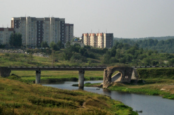 Особенно интересны остатки старого моста. Дальше видны дома южной части города.![]()