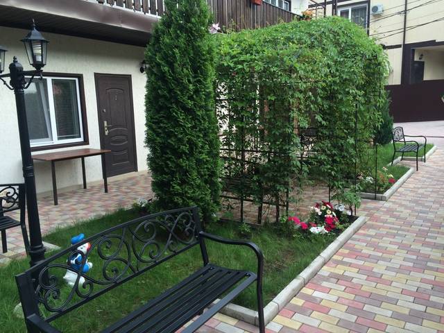 Двор ухожен, обустроен зонами отдыха, облагорожен ландшафтным дизайном. Есть детская площадка. Работает интернет wi-fi.