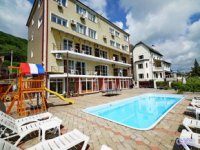 Ольгинка – небольшой красивый поселок Туапсинского района, расположившийся на берегу уютной бухты. Прозрачный воздух, сочетающий в себе свежесть моря и аромат хвойного леса, чистая морская вода и благоустроенные пляжи, все это помогает курортному поселку оставаться одним из самых популярных мест отдыха на Черном море. Гостиница расположилось в 20 км от города Туапсе, в одном из самых современных посёлках, предназначенных для семейного отдыха. Вокруг гостиницы хорошо развита инфраструктура, благодаря этому туристы посещают гостиницу и вне сезона.