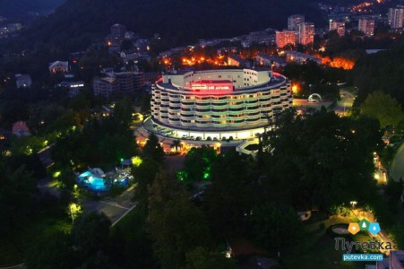Круглый корпус пансионата «Олимпийский-Дагомыс», окружённый субтропической зеленью, является одним из самых узнаваемых курортных объектов Сочи. С балконов номеров, ярусами опоясывающих здание, открывается потрясающий вид на окрестности. Поскольку «Олимпийский-Дагомыс» построен на возвышенности, панорама – исключительной красоты! В тёмное время суток это архитектурное кольцо сияет ночной подсветкой.
