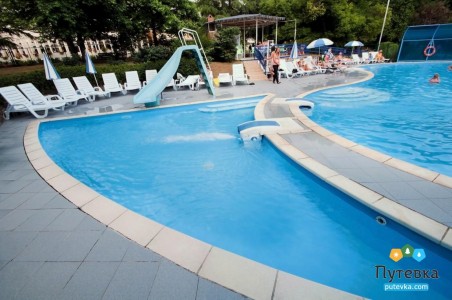 Проживание,3-разовое питание"шв.стол",лечение,открытые спорт.площ,пользов.пляжем,откр.бассейном(с 01.06-30.09), автостоянка,wi-fi