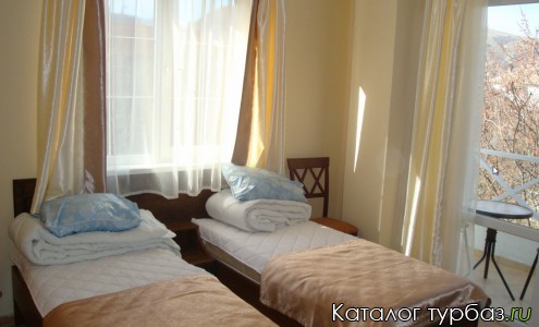 Номера находятся на втором этаже красивого нового дома. В каждом номере может разместится до 4 человек. Для обоих номеров имеется большая лоджия, на которой можно посидеть за ротанговым столиком на ротанговых креслах. Везде вокруг зелень и цветы. На территории гостевого дома есть мангал.