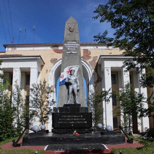 Памятник Героям-подводникам Северного флота, павшим в борьбе с немецко-фашистскими захватчиками открыт 22 июня 1944 года. Почти четыре года продолжалась оборона Советского Заполярья. Ключевая роль в защите северных рубежей страны принадлежит Полярному. Памятник расположен в небольшом сквере перед входом в здание штаба соединения подводных лодок. На постаменте с трех сторон выби… Информация