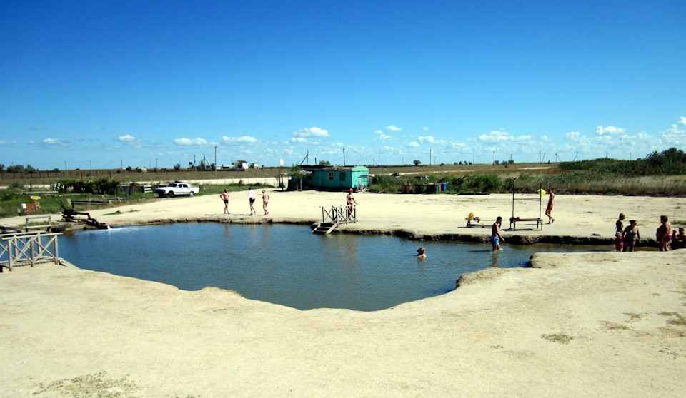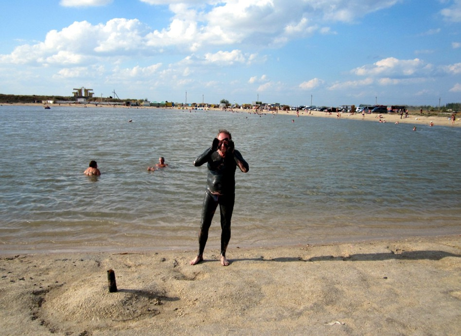 2. Сиваш или Гнилое озеро в безлюдной, дикой степи. Вода в нем стоячая, соленость 70-100%. Глубина - по колено. А на дне - лечебная грязь c сероводородным запахом, по составу равноценная грязям Саки и Мертвому морю в Израиле.