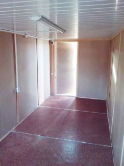 Комфортабельная металлическая рамная конструкция, использующаяся для временного проживания, организации склада или как рабочее помещение. Утеплены стены, потолок, пол, в качестве отделки используется оргалит.