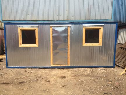 Каркас металлический, снаружи профнастил С8 Внутренняя обшивка из вагонки пол линолеум Тамбур, 2 внутренние двери 2 окна ПВХ с п/откидные. Утепление 100 мм. Возможно изготовление по Вашим размерам! Есть вопросы, звоните