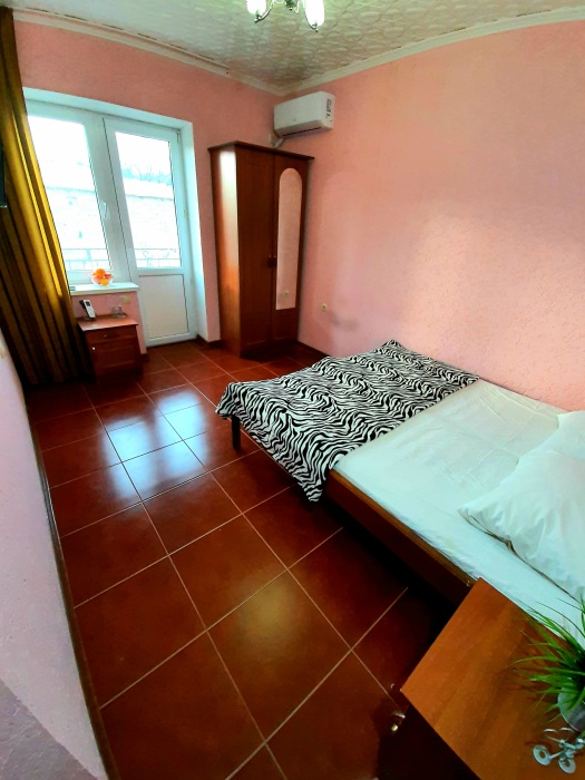 В номере: двуспальная кровать, шкаф, тумбочки, стол, стулья, зеркало, телевизор, вентилятор, холодильник, Wi-Fi, санузел, душ, отопление, балкон (наличие уточняйте при бронировании).