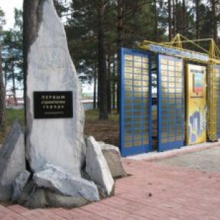 Памятник Первым строителям города и градообразующего предприятия по производству атомных бомб был открыт к 20-летию города. Рядом с обелиском расположена памятная доска с именами тех, кто строил завод и город. В 70-е годы, во время установки обелиска, молодежь того времени заложила под камнем капсулу с посланием для будущих поколений. Информация