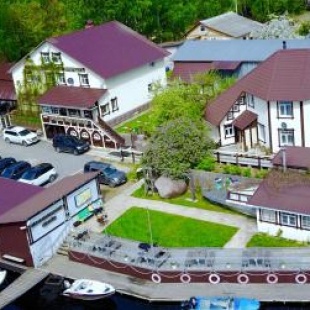 Отель находится прямо у воды, имеет свой пляж и причал. Так же для гостей есть ресторан, баня, массажный кабинет, караоке, спортзал, прокат велосипедов, лодок и сап-бордов. Видимо владельцы нацелены на получение прибыли от ресторана и сдачи номеров, так как про прокат спортинвентаря информация есть только на сайте. В ангаре пылятся сап-борды и доски для виндсёрфинга, кстати, не самых дешёвых моделей.