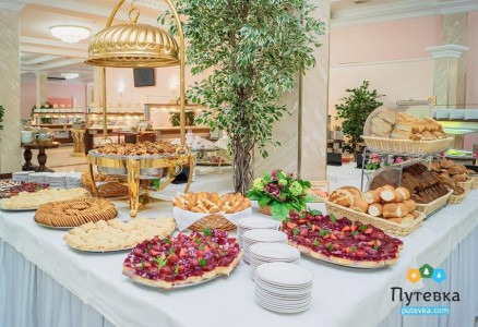 Особое внимание в санатории уделяется правильному и сбалансированному питанию гостей, поскольку это является неотъемлемой частью хорошего отдыха и успешного лечения. 3-разовое питание организовано по системе «Шведский стол» либо по заказному меню. В случае назначения диеты лечащим врачем, предоставляется питание в соответствии с номером диеты. Гости, проживающие в номерах категории «стандарт» питаются в «Бирюзовом», «Золотом» и «Розовом» залах. Проживающие в номерах Повышенной Комфортности питаются в «Коралловом», «Красном» и «Юбилейном» залах.