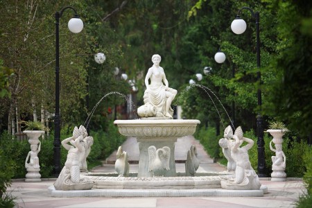 Смесь застойного СССР и привет из 90х. много старого и ветхлого, от бордюров и лавочек, до холла, обшитыми пластиковыми панелями. У ресепшн много сусально-фуфельных декораций, а-ля Екатерининский дворец. В какой то степени есть изюминка во всём этом, но для тех, кто родился в СССР😆 Были на шоу мыльных пузырей в ДК санатория. Это его несомненный плюс. для шоу нужны просторные ДК и их не так много сейчас