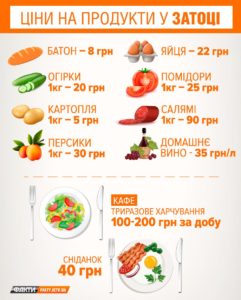 Цены и полезная информация. Ценовая политика в барах и ресторанах такая же разнообразная, как и сама Затока. Первая линия у моря «усыпана» всевозможными кафе, поэтому просто отдыхая на пляже можно насладиться не только мороженым или охлажденными напитками. Трехразовое питание в кафе будет стоить от 200 гривен в день. По маршруту Одесса – Затока находятся рынки, на которых продаются овощи и фрукты. Цены здесь значительно завышены, поэтому отдыхающие со своим автотранспортом делают покупки в Белгород-Днестровском. Наценка на продукты в магазинах составляет примерно 20-30%, чем в городе.