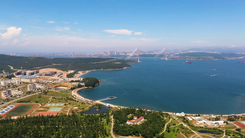 На острове Русский нас привлекали два предмета: это мост, открывать который приезжал сам В. Путин.