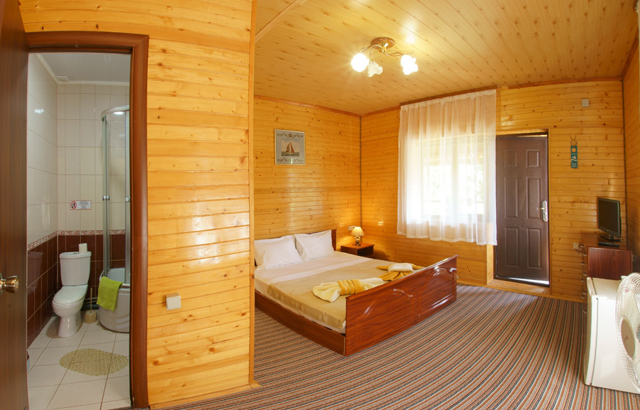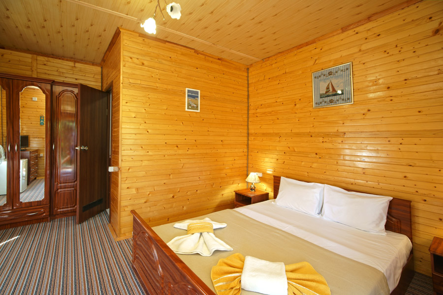 Наши котеджи построены из натуральных экологически чистых хвойных пород деревьев, что создаёт в номере особую атмосферу.