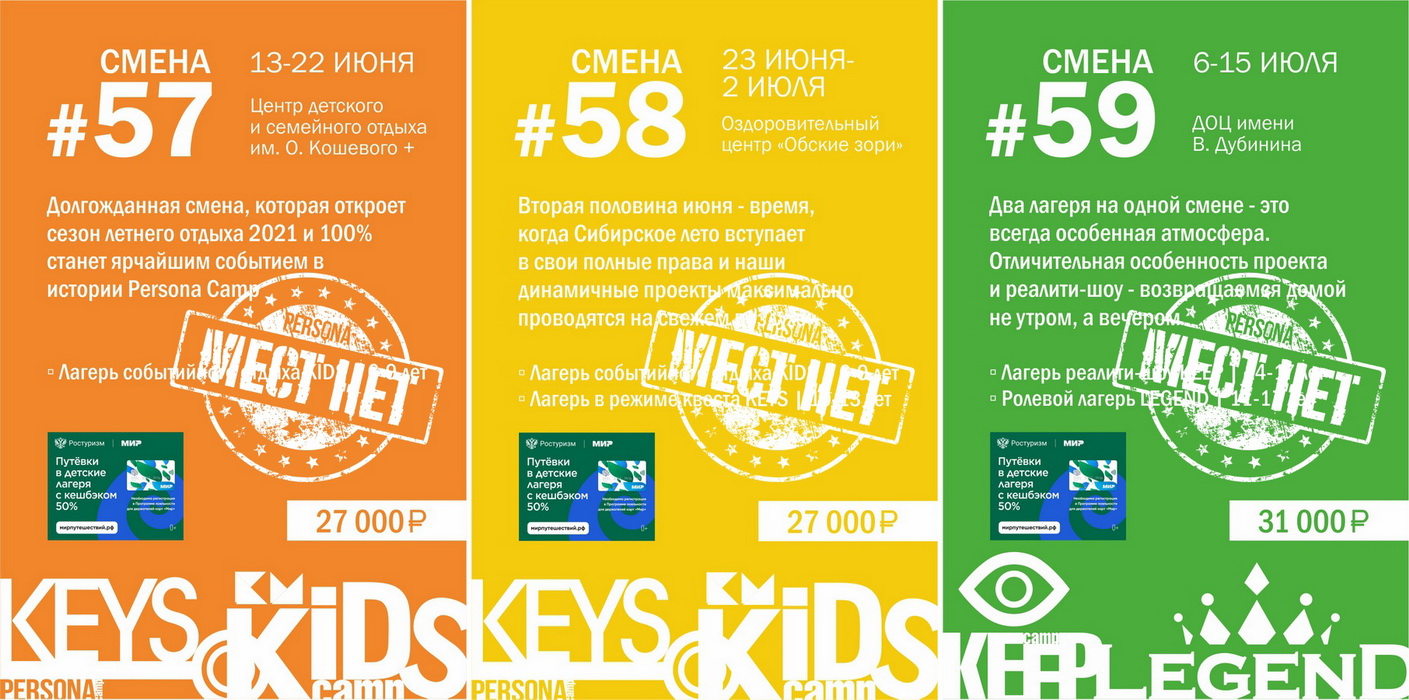 Летняя кампания детского отдыха стартует в первых числах июня, и, несмотря на то что программу кешбэка планируется начать не ранее , а формат и возможность участия в ней Persona Camp формирует, большинство мест на первые смены Persona Camp забронированы. Безусловно, принимать решение, бронировать путевку или отложить, решать родителям, вопрос лишь в том, что к этому времени свободных мест может не остаться.