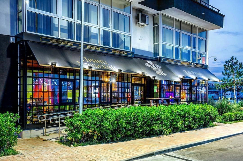 В декабре 2014 года в Олимпийском парке открылся английский паб «Принц Уэльский» – заведение с атмосферой типичных пабов Туманного Альбиона. Вся мебель и предметы интерьера привезены из Лондона с Portobello Road. Здесь каждая вещь имеет свою историю. Кухня — традиционная островная: сливочный суп чаудер с морепродуктами, бангерс-энд-мэш,фиш-энд-чипс, пастуший пирог. Барная карта включает с десяток сортов разливного эля, портера и стаута, есть обязательный для такого места огромный выбор виски — как купажированного, так и односолодового.